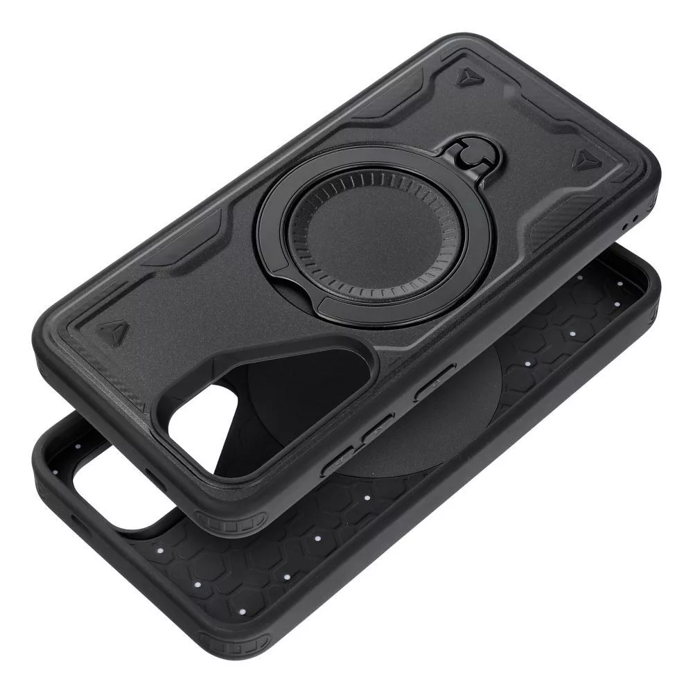 A tokba rejtett gyűrű stabil állványként funkcionál, lehetővé téve a telefon kényelmes vízszintes elhelyezését – ideális filmnézéshez vagy fotók megtekintéséhez. Összecsukva a gyűrű beleolvad a tok kialakításába, és nem zavarja a töltést vagy a használatot.