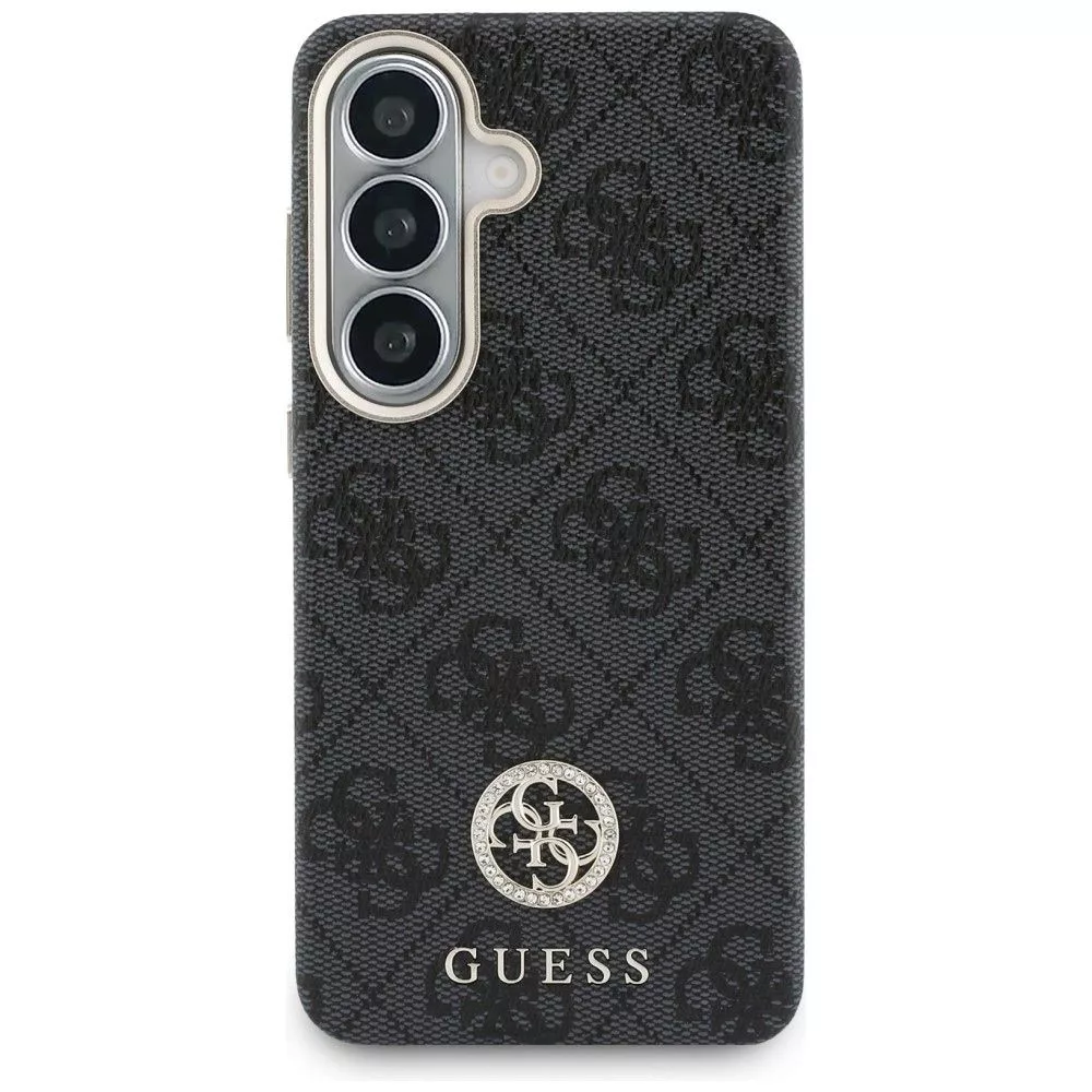 GUESS 4G Rhinestone Round Logo MagSafe kompatibilis tok Samsung S26 GUHMS26SP4GRMDEK fekete