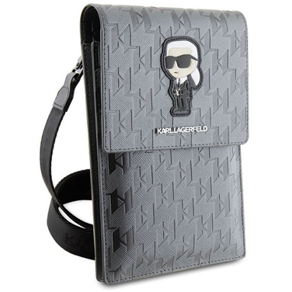KARL LAGERFELD univerzális táska mobiltelefonhoz KLWBSAKHPKG (Saffiano Mono Ikonik) ezüst