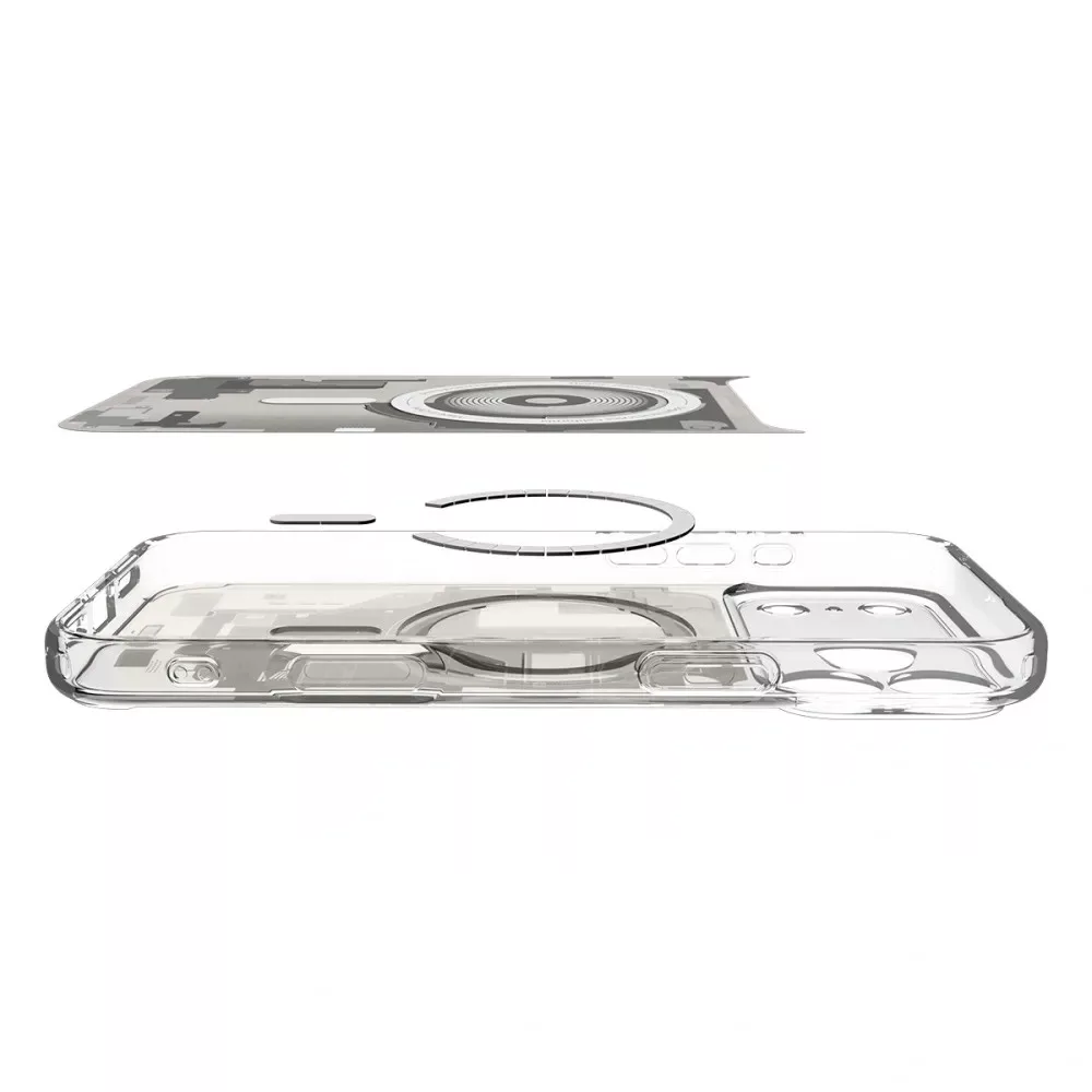 Rendkívül strapabíró hátlap – SPIGEN Ultra Hybrid. Tökéletes védelmet nyújt a sérülések és karcolások ellen. Megerősített élekkel rendelkezik, amelyek védik a telefont esés esetén. A termék kompatibilis a MagSafe technológiával, amely lehetővé teszi az induktív töltést. A gyűrűbe beépített mágnesek azt jelentik, hogy nem kell levennie a tokot, ha induktív módon szeretné feltölteni a telefon akkumulátorát. Emellett szabadon használhat mágneses autós tartókat anélkül, hogy vezetés közben aggódnia kellene a rögzítés szilárdsága miatt. A SPIGEN Ultra Hybrid tok fejlett védelmet nyújt a sérülések és karcolások ellen. A megerősített élek további védelmet nyújtanak a készüléknek esés esetén. Az átlátszó hátlapok lehetővé teszik, hogy megőrizze a készülék eredeti megjelenését. Kiváló minőségű anyagokból készült, így garantálja a hosszú távú használatot. Minden szükséges rendszernyílással rendelkezik, ennek köszönhetően teljes hozzáférést biztosít a csatlakozókhoz és a funkciógombokhoz. Könnyen felszerelhető – csak távolítsa el a tok mindkét oldalán található védőfóliát, és helyezze a tokot a készülékre.