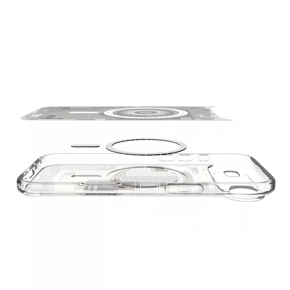 Rendkívül strapabíró hátlap – SPIGEN Ultra Hybrid. Tökéletes védelmet nyújt a sérülések és karcolások ellen. Megerősített élekkel rendelkezik, amelyek védik a telefont esés esetén. A termék kompatibilis a MagSafe technológiával, amely lehetővé teszi az induktív töltést. A gyűrűbe beépített mágnesek azt jelentik, hogy nem kell levennie a tokot, ha induktív módon szeretné feltölteni a telefon akkumulátorát. Emellett szabadon használhat mágneses autós tartókat anélkül, hogy vezetés közben aggódnia kellene a rögzítés szilárdsága miatt. A SPIGEN Ultra Hybrid tok fejlett védelmet nyújt a sérülések és karcolások ellen. A megerősített élek további védelmet nyújtanak a készüléknek esés esetén. Az átlátszó hátlapok lehetővé teszik, hogy megőrizze a készülék eredeti megjelenését. Kiváló minőségű anyagokból készült, így garantálja a hosszú távú használatot. Minden szükséges rendszernyílással rendelkezik, ennek köszönhetően teljes hozzáférést biztosít a csatlakozókhoz és a funkciógombokhoz. Könnyen felszerelhető – csak távolítsa el a tok mindkét oldalán található védőfóliát, és helyezze a tokot a készülékre.